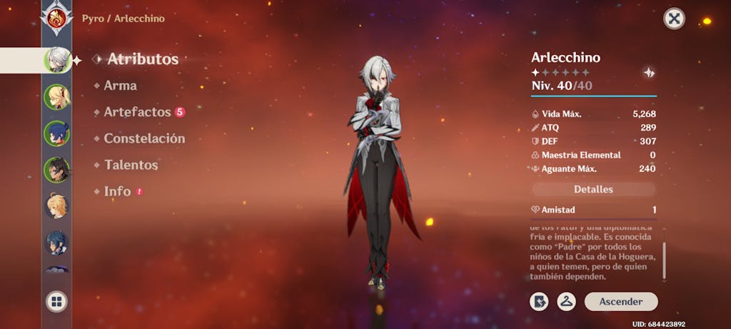 This is a Genshin Impact reroll account featuring Arlecchino on your chosen server: